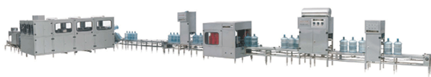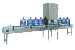 This production line is specially designed to produce 3-, 5-gallon barreled drink water, whose production capacity ranges from 80 to 1200 barrels per hour. It integrates barrel washer, filler and capper into one unit. And this series production line can automatically carry out the functions of washing, sterilizing, filling, capping, barrel counting and discharging. It is a new kind of barreled water auto-producing line, and it integrates mechanism, electronics and pneumatics into one unit.