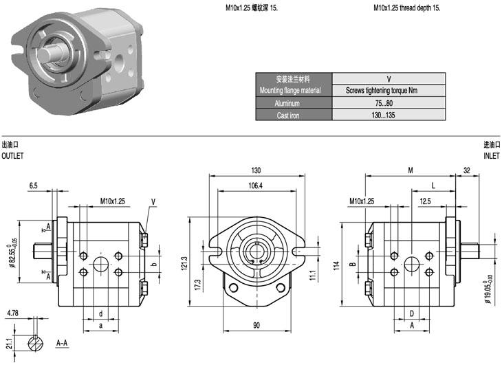 BHP2.5A2-D-19 | 19 | 280 | 290 | 300 | 3500 | 600 | 121 | 58.8 | 1 1/16-12UNF | 7/8-14UNF |